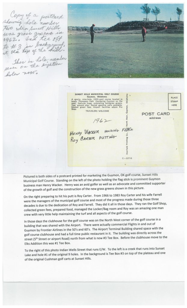 Carts were first made available in much the same way. Business men in Guymon were contacted and signed a note at the bank for $1,000.00 each. Revenues from cart rentals were put into a special cart fund and applied to pay off the note. The cart fund remains in effect today, separated from the general fund, and is used for SHGC – History.