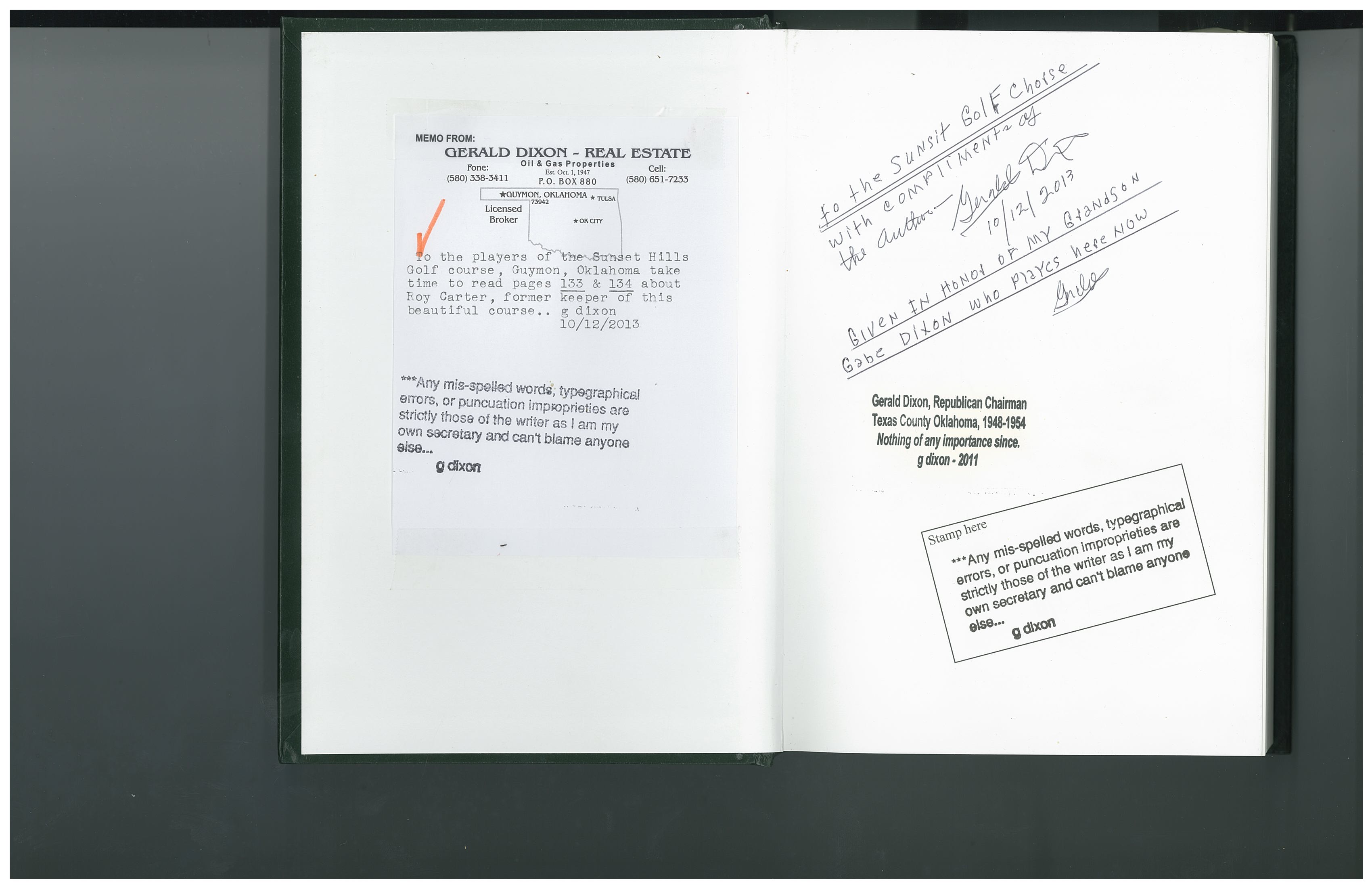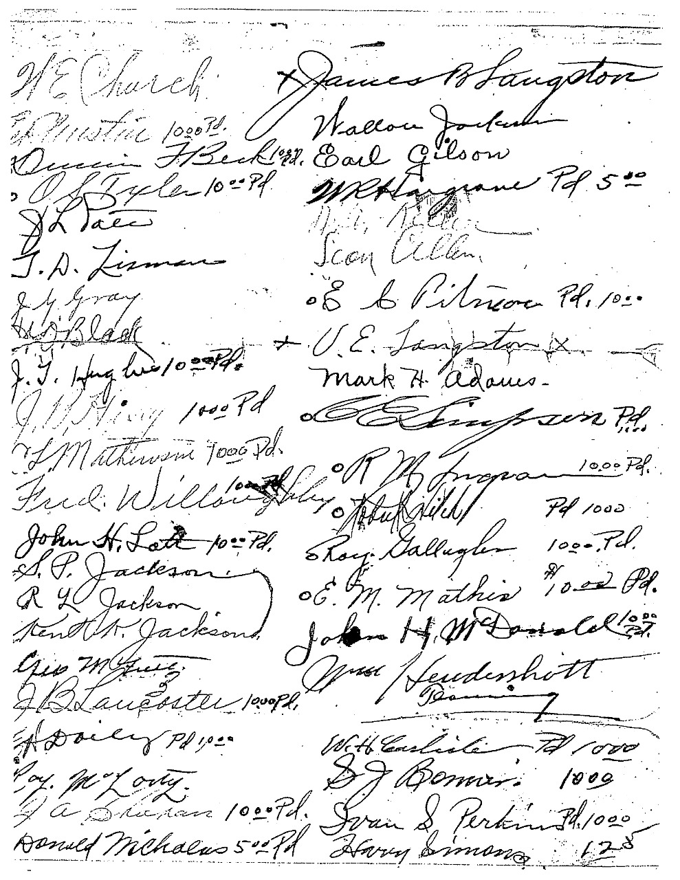 Many years ago Guymon was without a golf course. Research has shown that as many as five golf courses exited in Guymon including the current Sunset Hills. At one point a group of residents joined forces and 90 people contributed $10 each to fund a golf course in town. Below are the signatures of the people who made a contribution and the amount.